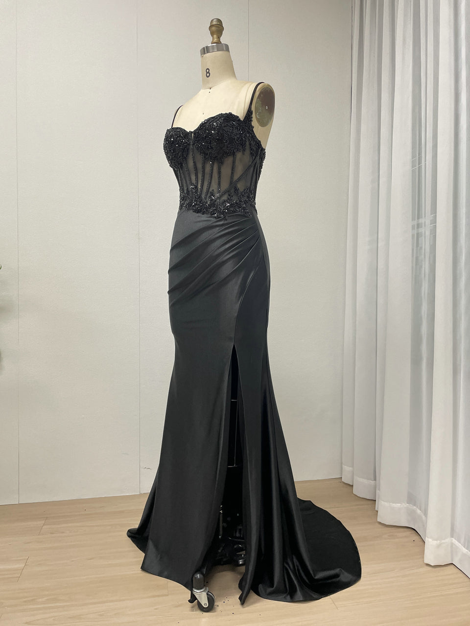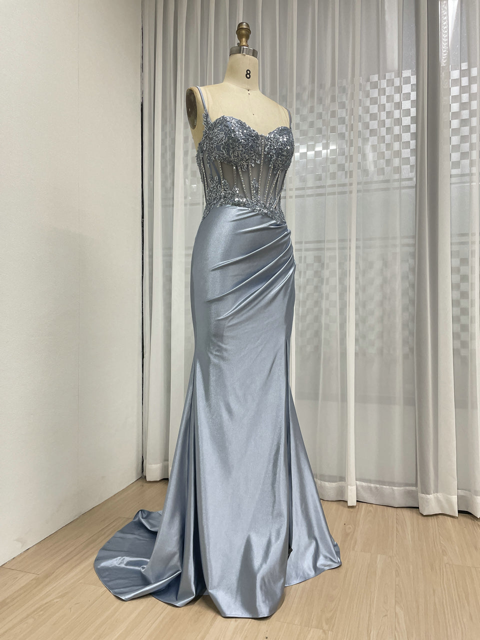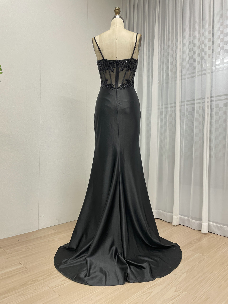Stylish Mermaid Prom Evening Gown With Sexy High Slit 3D Floral Embroidery for Party MB40426