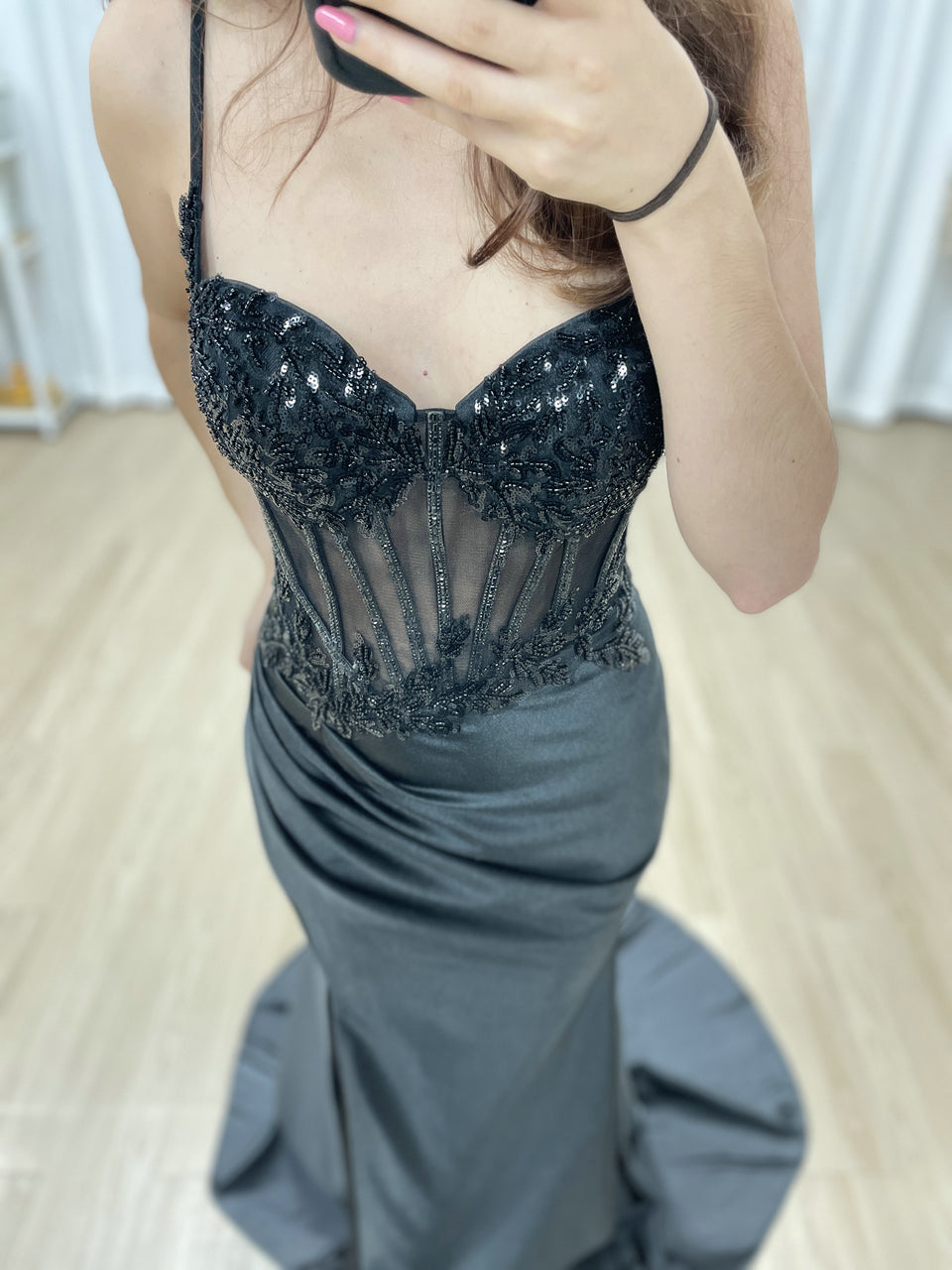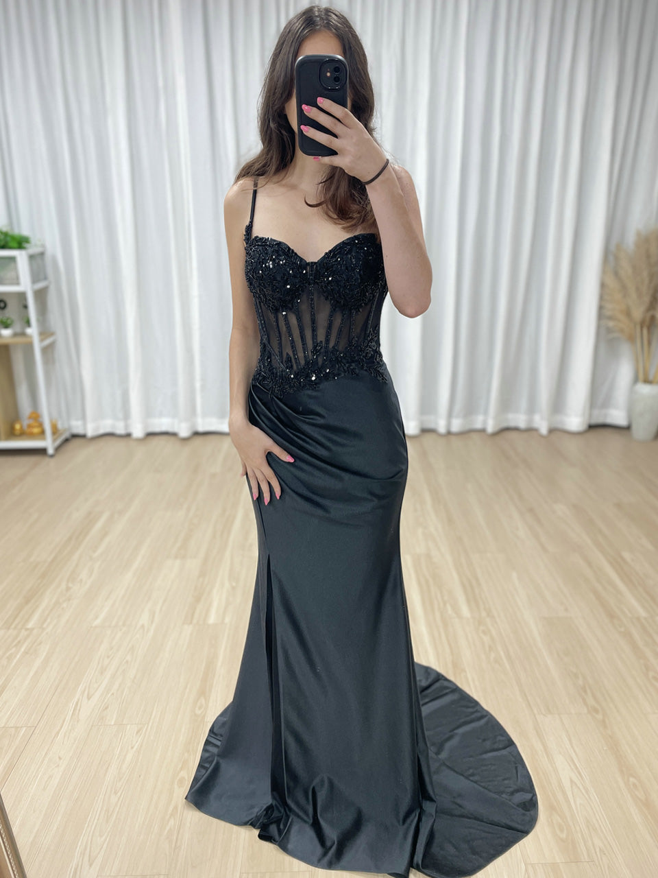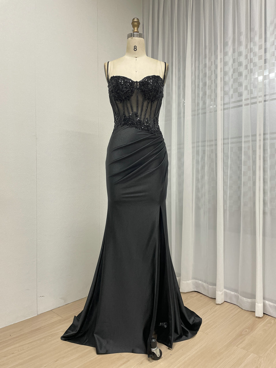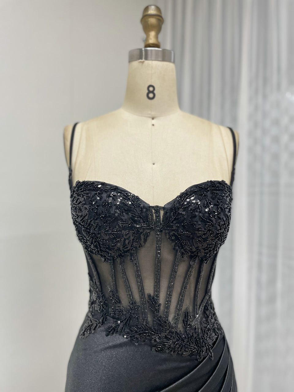 Stylish Mermaid Prom Evening Gown With Sexy High Slit 3D Floral Embroidery for Party MB40426