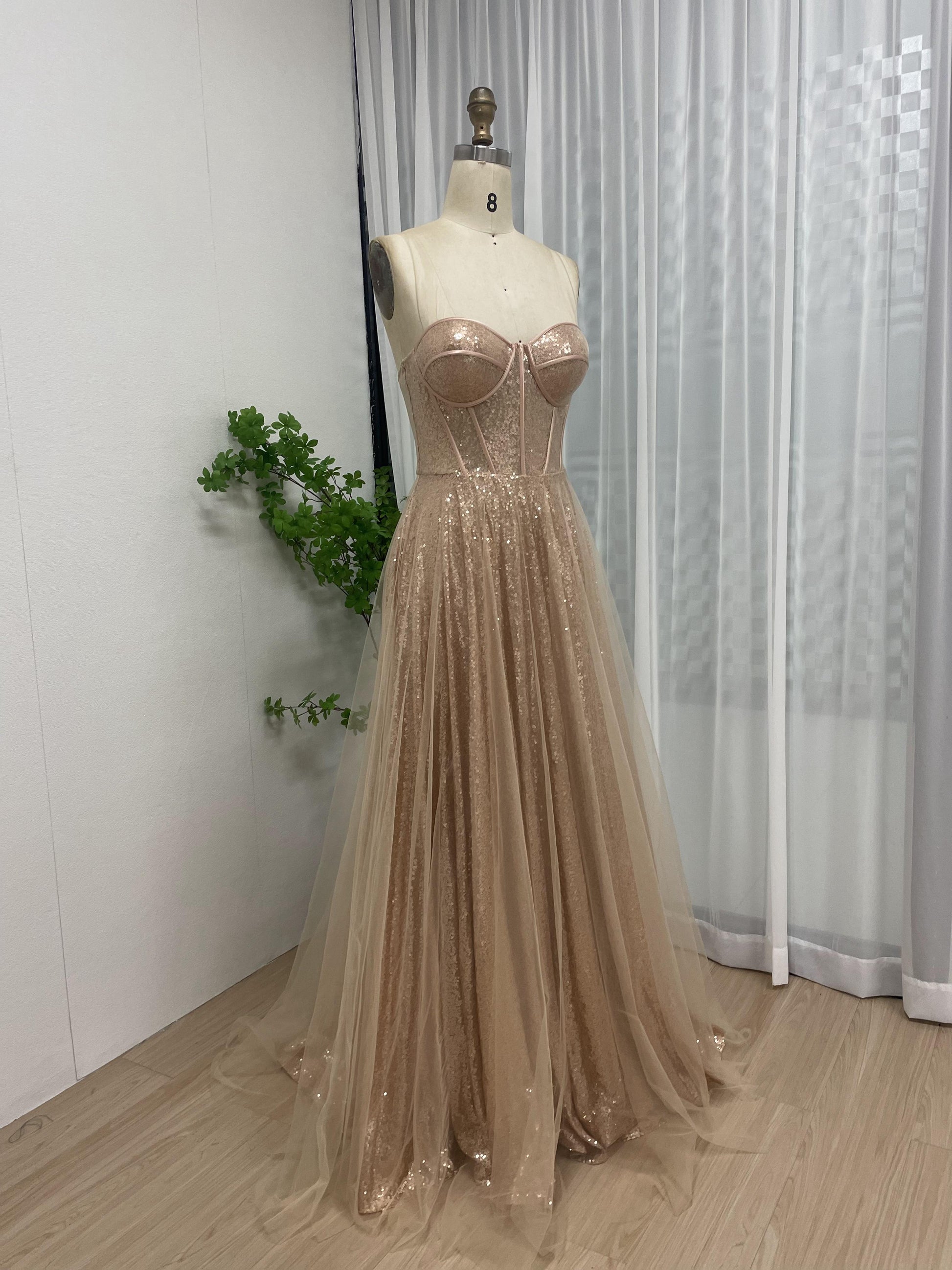 Sweetheart A Line Tulle Corset Top Birthday Party Champagne Prom Dress MB40165