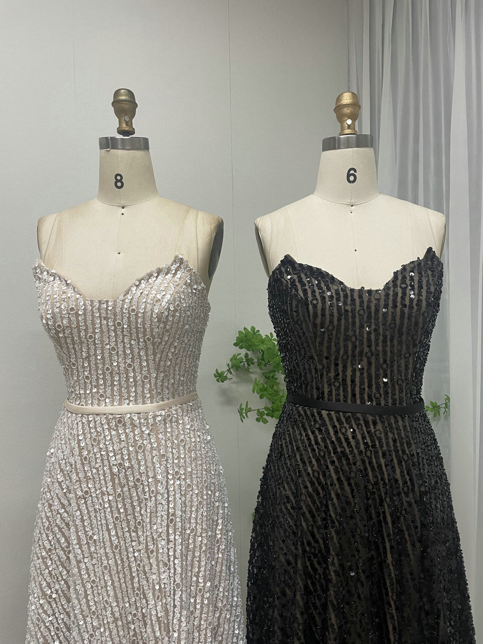 White A-Line Sparkle Prom Dress Sweetheart Full Length Gown MY30090