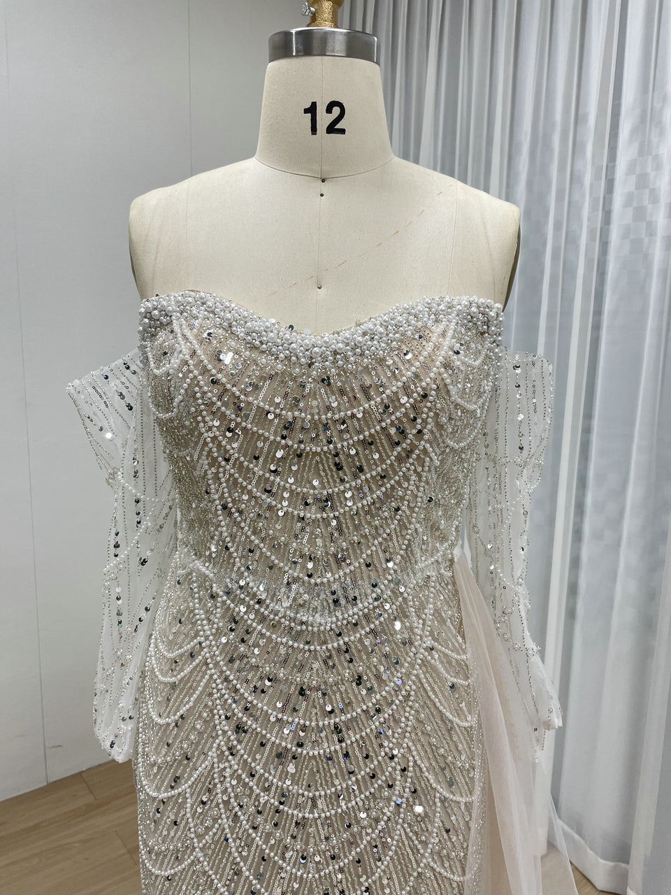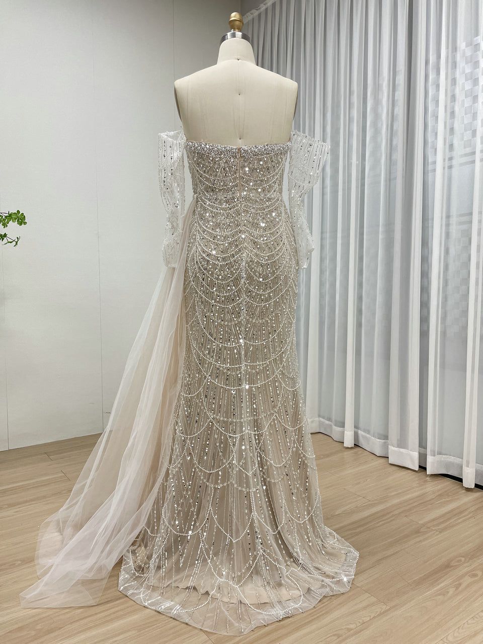 Whtie Beaded Mermaid Dress Cape Train Gala Bridal Wear MY30110-L